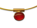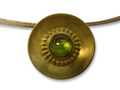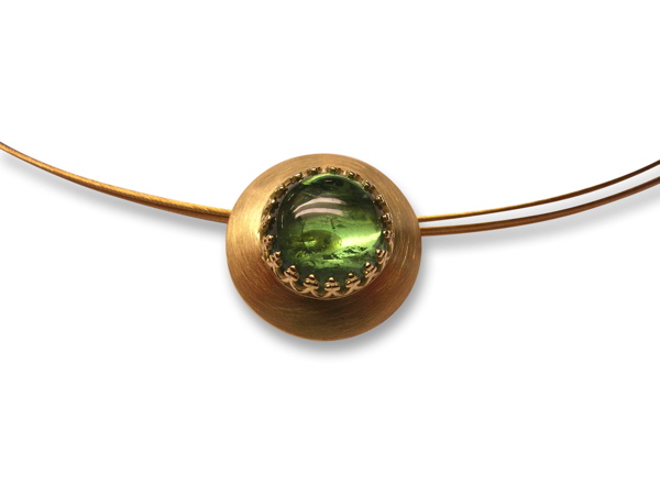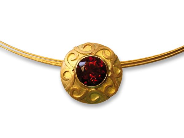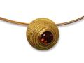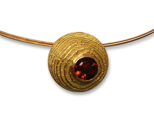 750er Gelbgoldanhänger mit Citrin im Ossa-Sepiaguß. Beim Ossa-Sepia Guß verbrennt die Sepiaschale beim Eingießen des heißen Metalls in die Form und es entsteht die Struktur auf der Oberfläche. Jede Form ist nur einmal verwendbar, d.h. jeder Guß sieht immer ein bißchen anders aus.