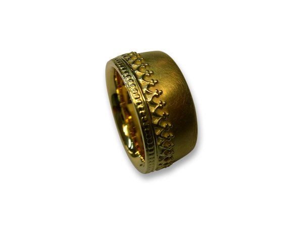 585er Gelbgoldring mit Drahtbelötungen. Ring ca 9mm breit.