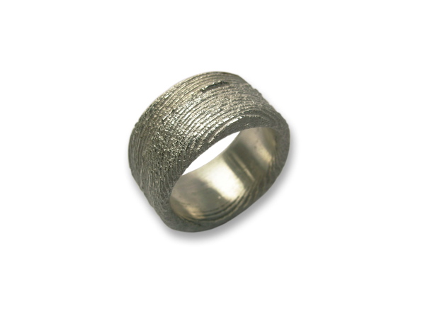 Ossa-Sepia Ring aus 935er Silber. Jeder Ring ist einzigartig. Das heiße Material wird in die vorbereitete Ossa-Sepia Schale gegossen. Die Schale verbrennt beim Eingießen des Silbers und es entsteht die Struktur auf der Ringschiene. Da die Schalen ein Naturprodukt sind, sieht jeder einzelne Ring etwas anders aus. Man kann niemals zweimal exakt den gleichen Ring herstellen.