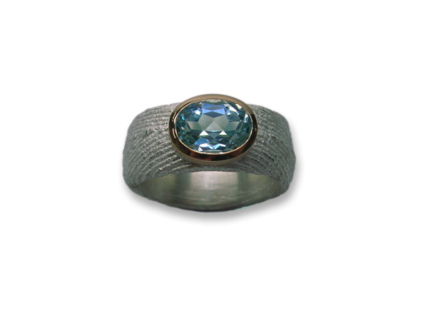 Ossa-Sepia Ring in 935 er Silber mit blauem Topas in 750er Goldfassung